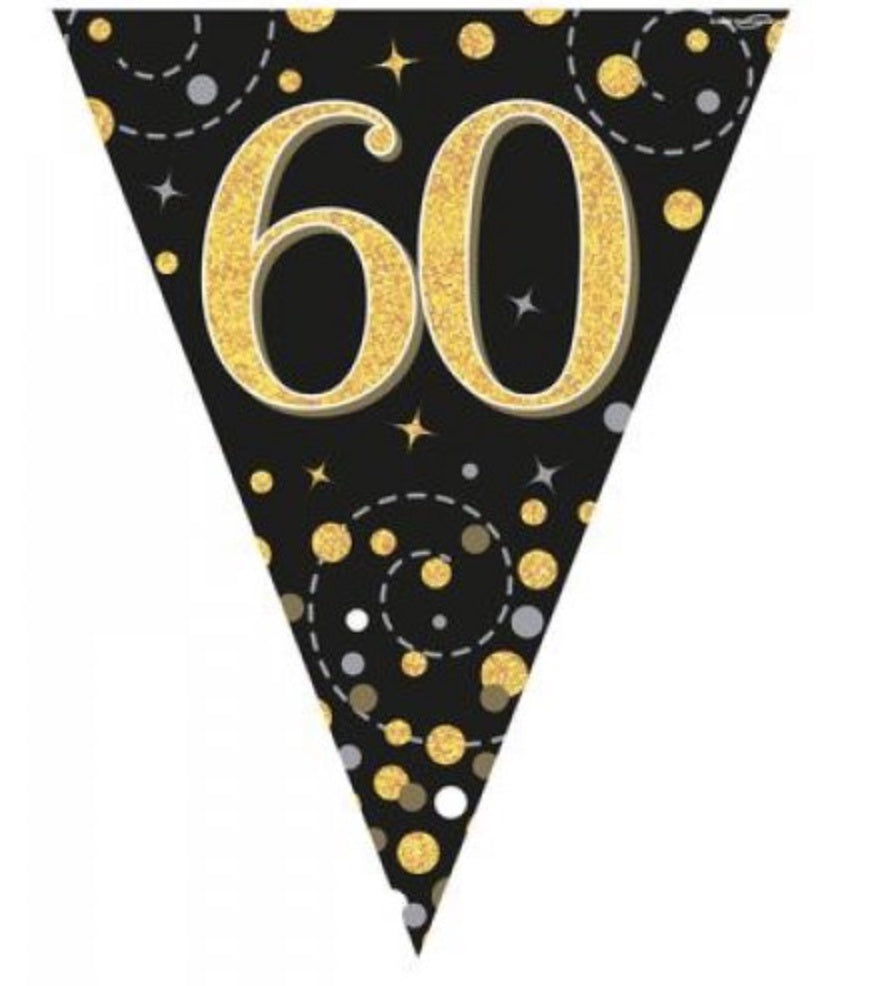 60th Sparkling Fizz Black & Gold Flag Bunting 3.9m