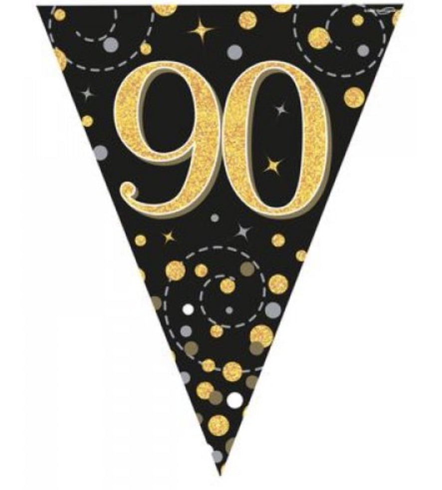 90th Sparkling Fizz Black & Gold Flag Bunting 3.9
