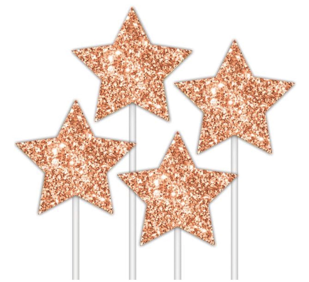 CAKE TOPPER STARS 4PK ROSE GOLD