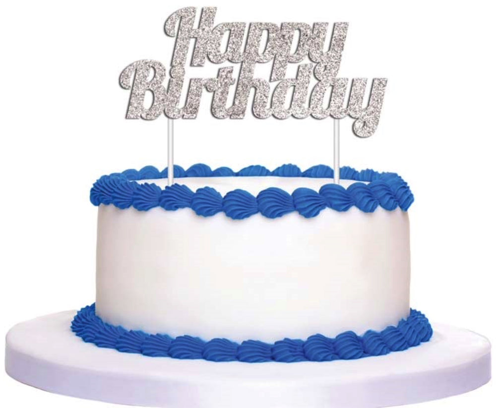 CAKE TOPER 1PK GLTR SLVR BDAY