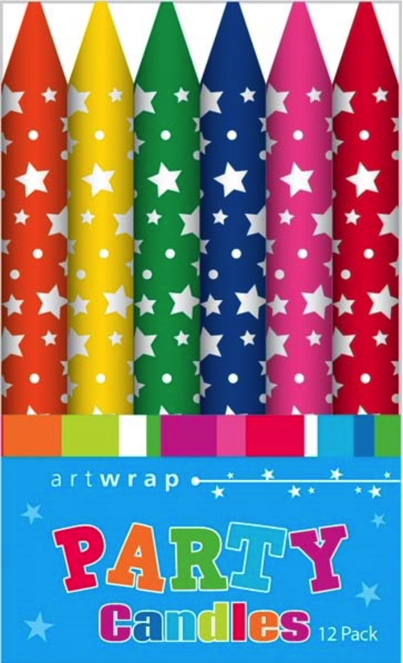 CANDLE 12PK 8CM PRINTD STARS
