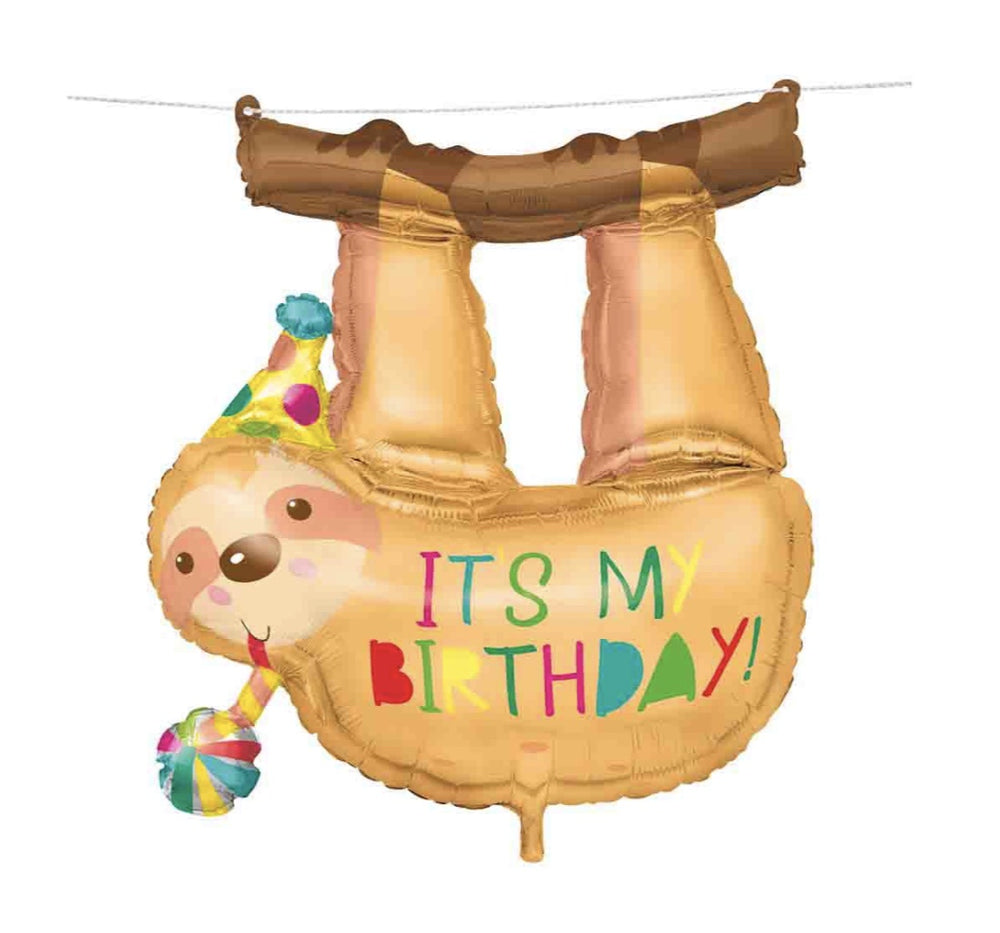 HANGING SLOTH "IT'S MY BIRTHDAY" 71CM (28") FOIL BALLOON WITH TWINE