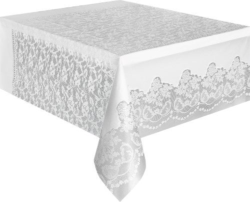 White Lace Unique Plastic Tablecover Rectangle 137cm x 274cm (54" x 108")