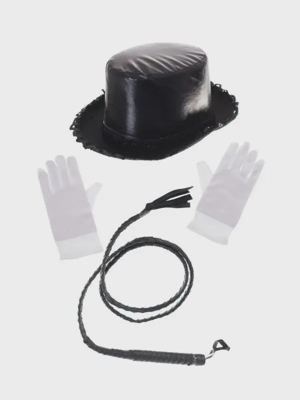 Show off your ringmaster skills at your next Circus themed party when you wear this circus ringmaster costume accessory kit for adult's. Complete with a top hat, whip and gloves, this ringmaster costume kit is perfect to take the leading role at your Circus fancy dress party!