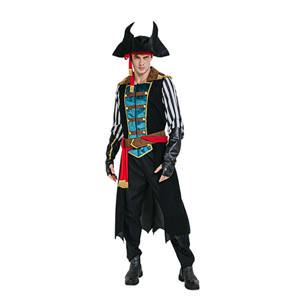ADULT DELUXE MENS HIGH SEAS PIRATE , COAT, HAT, BELT, HEADBAND, SASH, ARMGUARDS