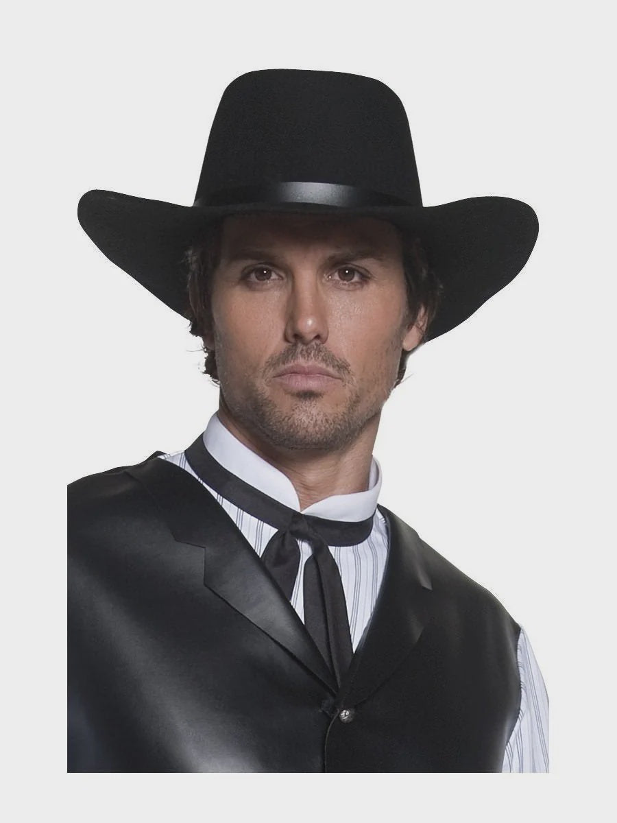 Authentic Western Gunslinger Hat, Black, Wide Brimmed