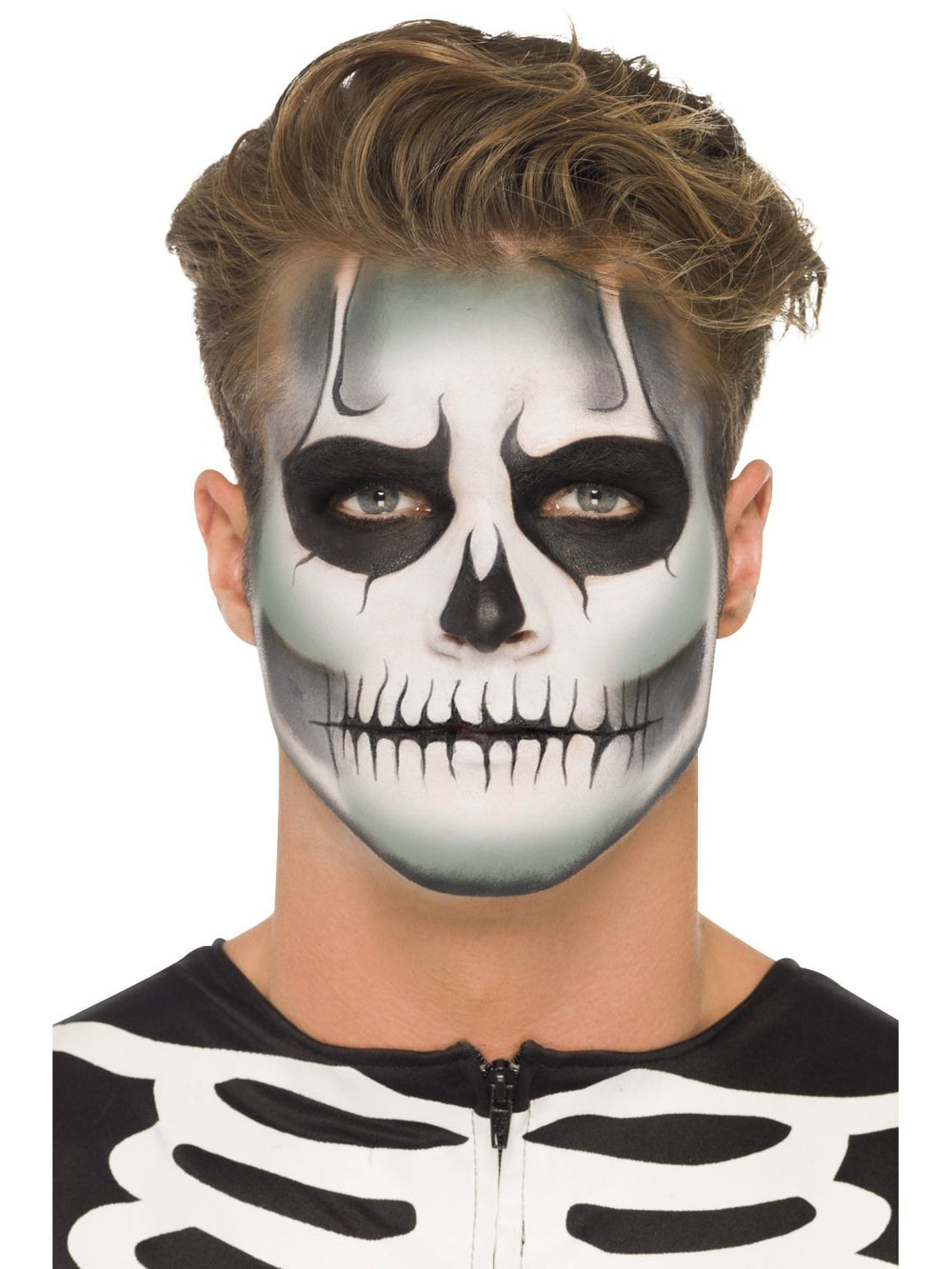 Our Glow in the Dark Skeleton Make Up Kit, is great to let your imagination run wild or use our design to complete the look of your costume. The Kit includes glow-in-the-dark cream sachet, black crayon, green, white and black face paint and & Applicator Brush