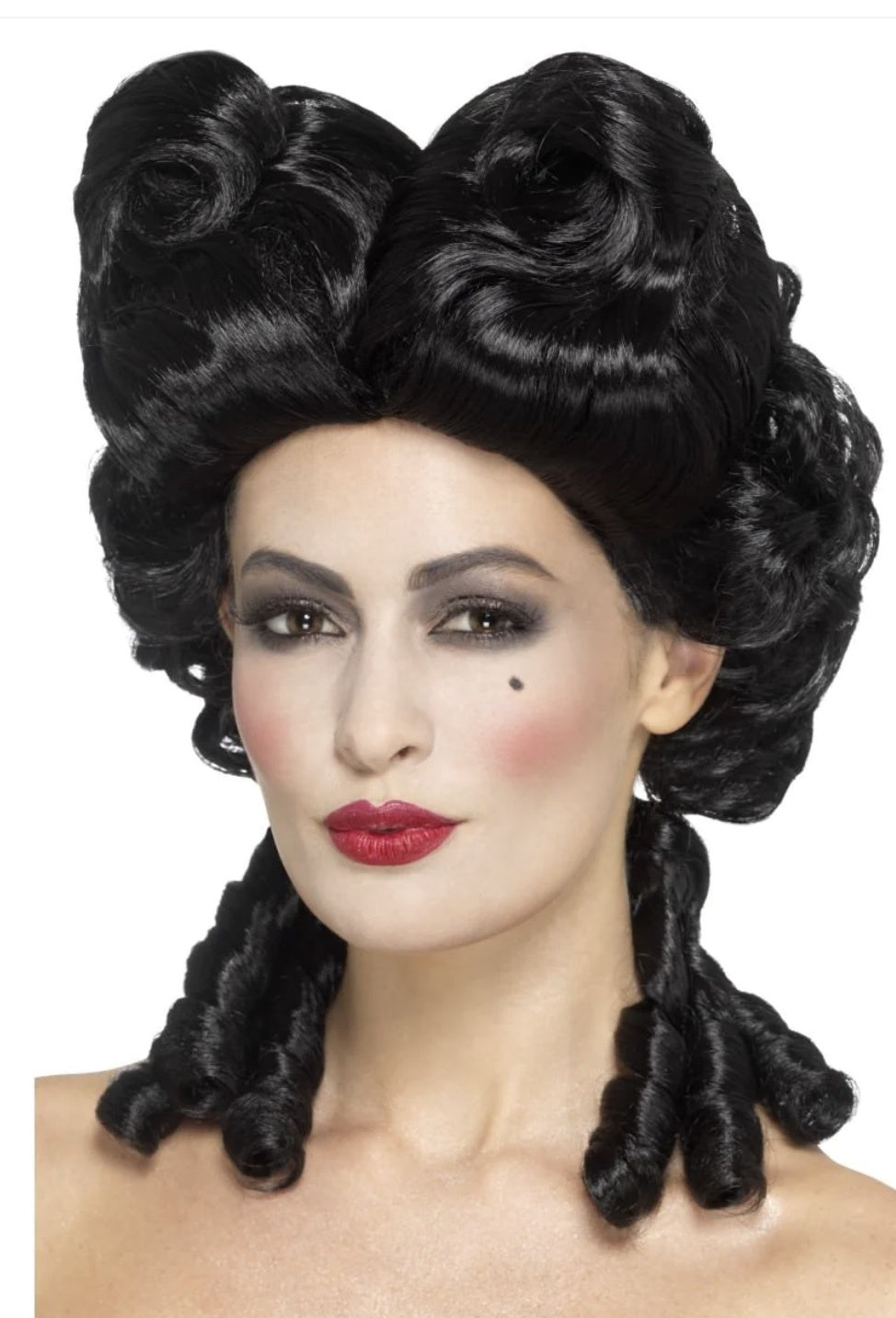 Become the ultimate madame at your next masquerade party with this Gothic Baroque women's black wig by Smiffys. This beautifully up-styled Baroque Wig with barrel curls reminiscent of a byone era, will be the finishing Halloween costume accessory to make everyone envious of your 18th century style! See below for full description