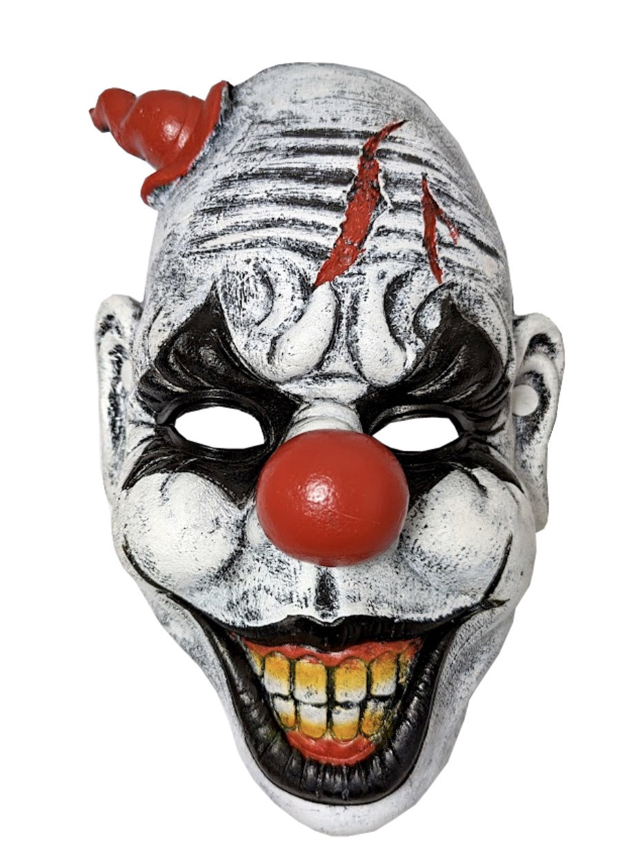 GRINNING PU CLOWN MASK W/ RED CONE HAT