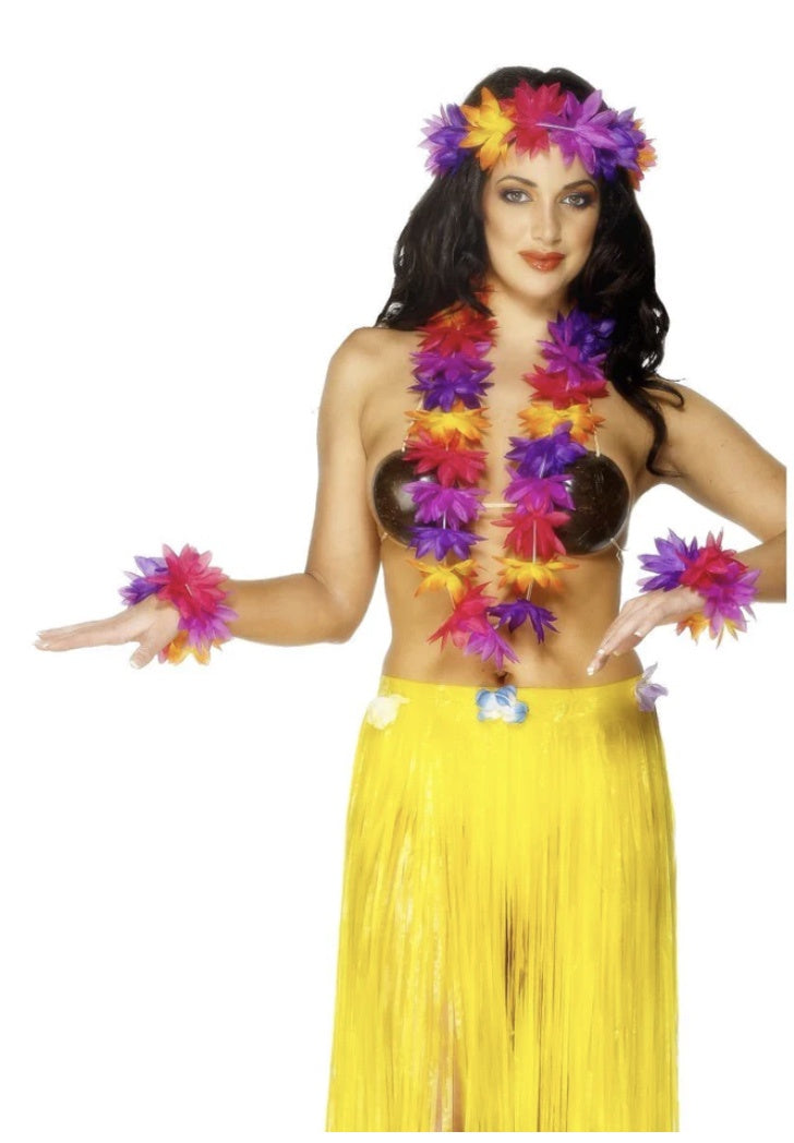 Hawaiian 4 Piece Set, Multi-Coloured, with Garland, Wristbands and Headband