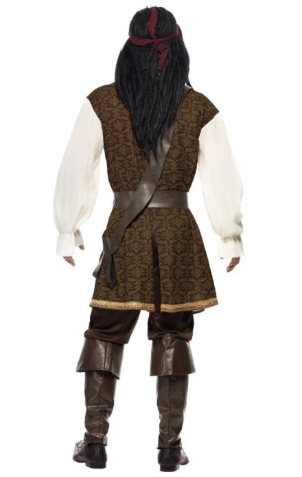 High Seas Pirate Costume, Brown, Top, Short Trousers, Baldric, Belt & Headscarf