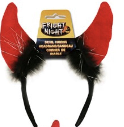 HWEEN DEVIL HORN HEADBAND W/BLACK FEATHER 3ASST 20CM