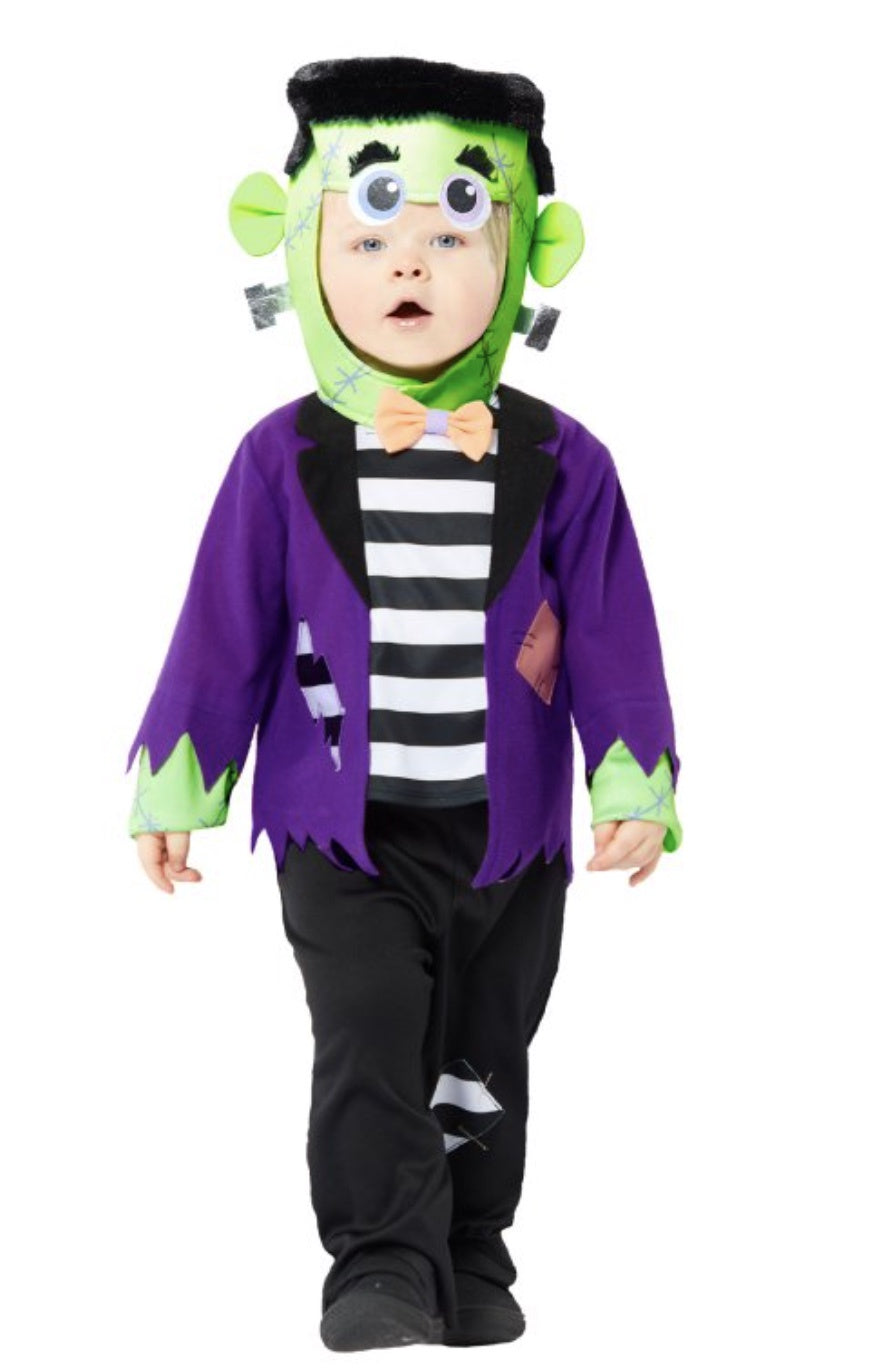 Become a cute monster this Halloween in this Little Frankie Toddler and Kids Costume. The costume comes with a long-sleeve shirt with a printed purple jacket over a striped shirt and features patches and tattered hems, a pair of black trousers with a matching striped patch, and a soft headpiece in the style of Frankenstein with green skin, some printed scarring, bolts in the neck, googly eyes and black hair. Perfect for Halloween whether you're celebrating at home or out trick-or-treating!