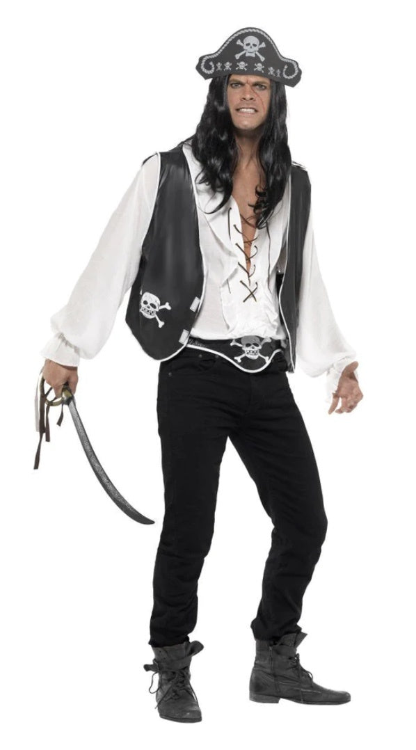 Pirate Set, Black, with Hat, Waistcoat and Belt
