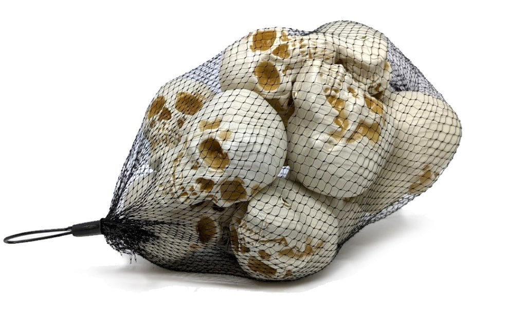 PK/8 MINI SKULLS IN MESH BAG 13X13X17CM