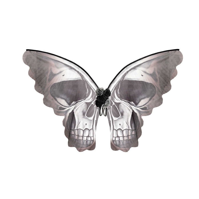 SKELETON SKULL HEAD BUTTERFLY WINGS