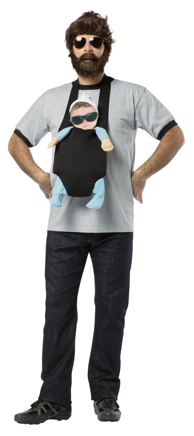 This Vegas Aftermath Mens Costume is a hilarious ensemble that captures the aftermath of a wild night out. This costume includes a soft baby carrier with a stuffed baby, featuring a digitally printed face wearing sunglasses to add a comedic touch, while the short brown wig, beard, and aviator costume sunglasses complete the look. Perfect for Vegas or movie themed parties or Halloween, this costume is sure to be a hit. Pair it with casual shoes and pants for the ultimate party-goer look.