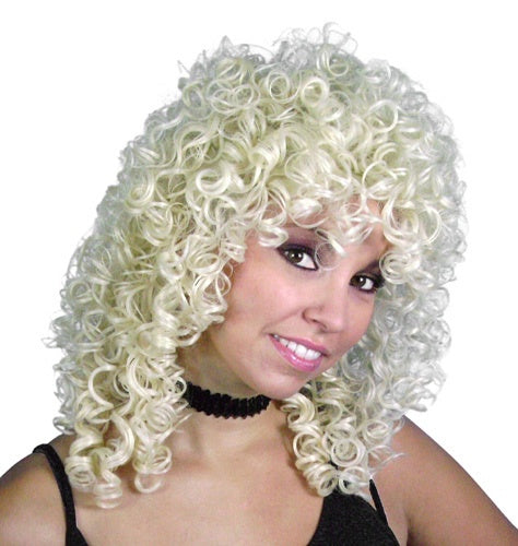 80's style wig. Tight defined curls. Great for any 80's character, including Dolly Parton. Colour - Blonde
