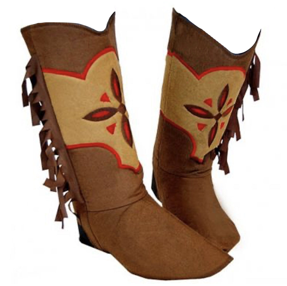 This simple but effective accessory will complete your cowgirl costume. These faux Suede Womens Cowgirl Boot Covers feature tassles down the side and are designed to be worn over your shoes. Wear them with a pair of jeans and a cowgirl hat for an easy costume idea. Yee-haw!