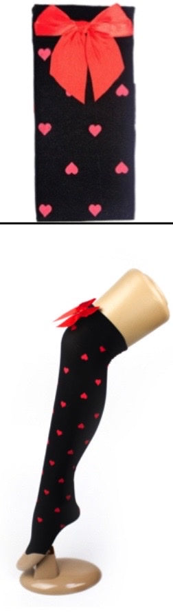 Stocking with Pattern & Bow (Black with Red Heart)