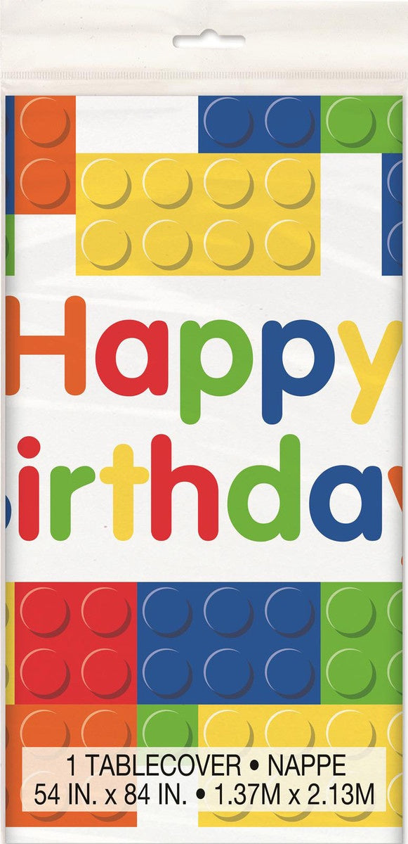 BUILDING BLOCKS BIRTHDAY PRINTED TABLECOVER 137CM X 213CM (54" X 84")