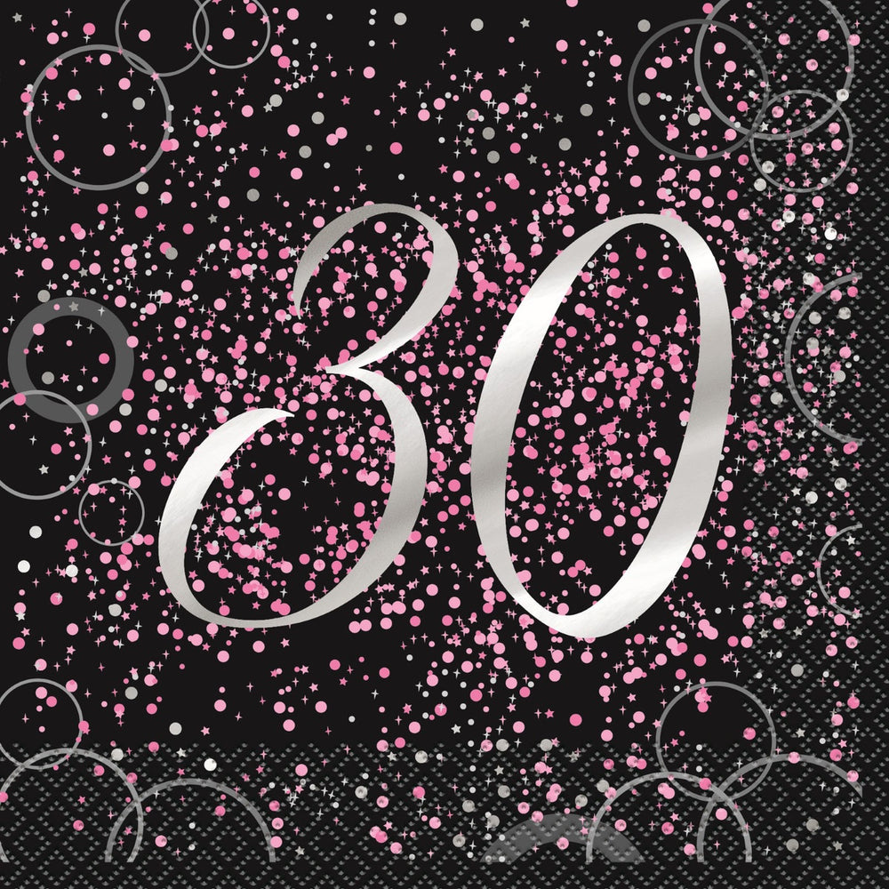 GLITZ PINK 16 FOIL STAMPED "30" LUNCHEON NAPKINS 2PLY 33CM X 33CM (13" X 13")