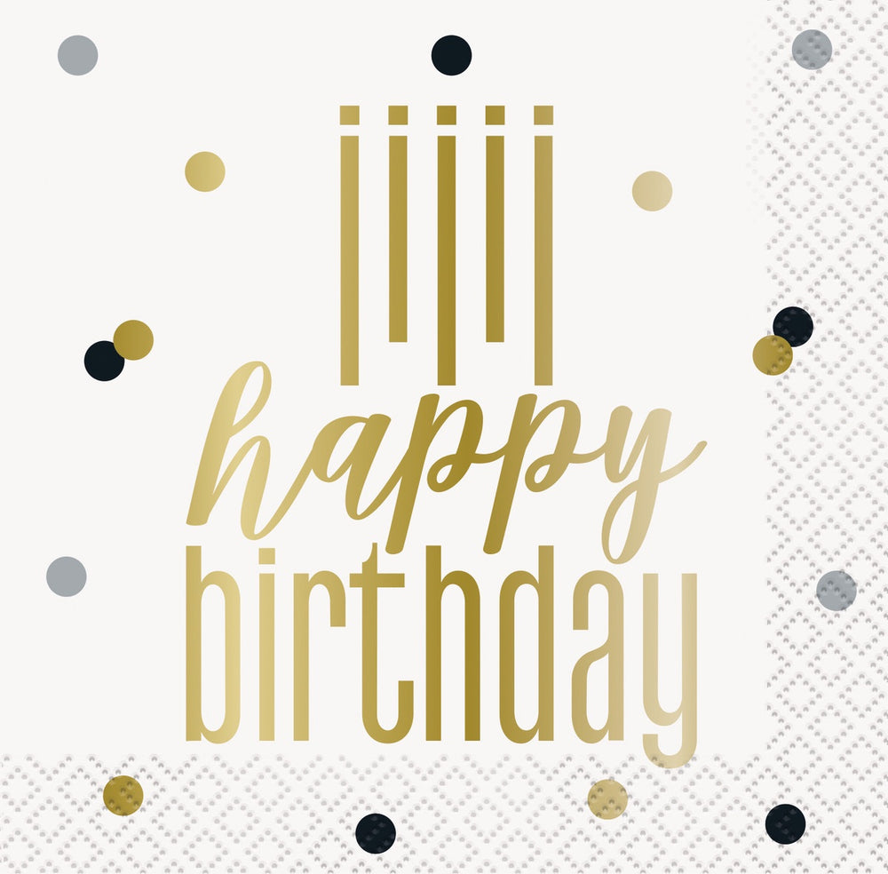 METALLIC HAPPY BIRTHDAY 16 BEVERAGE NAPKINS 2PLY 25.4CM X 25.4CM (10" X 10")