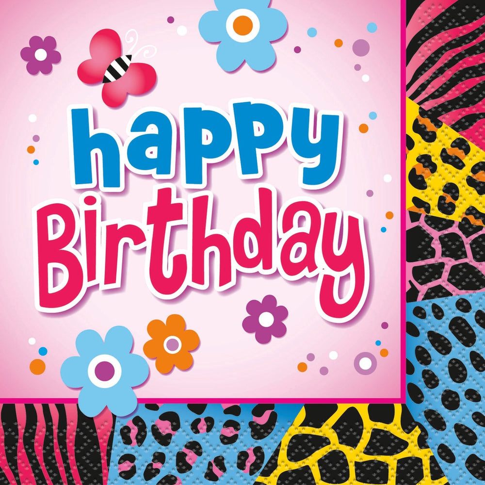 WILD BIRTHDAY 16 LUNCHEON NAPKINS 2PLY 33CM X 33CM (13" X 13")