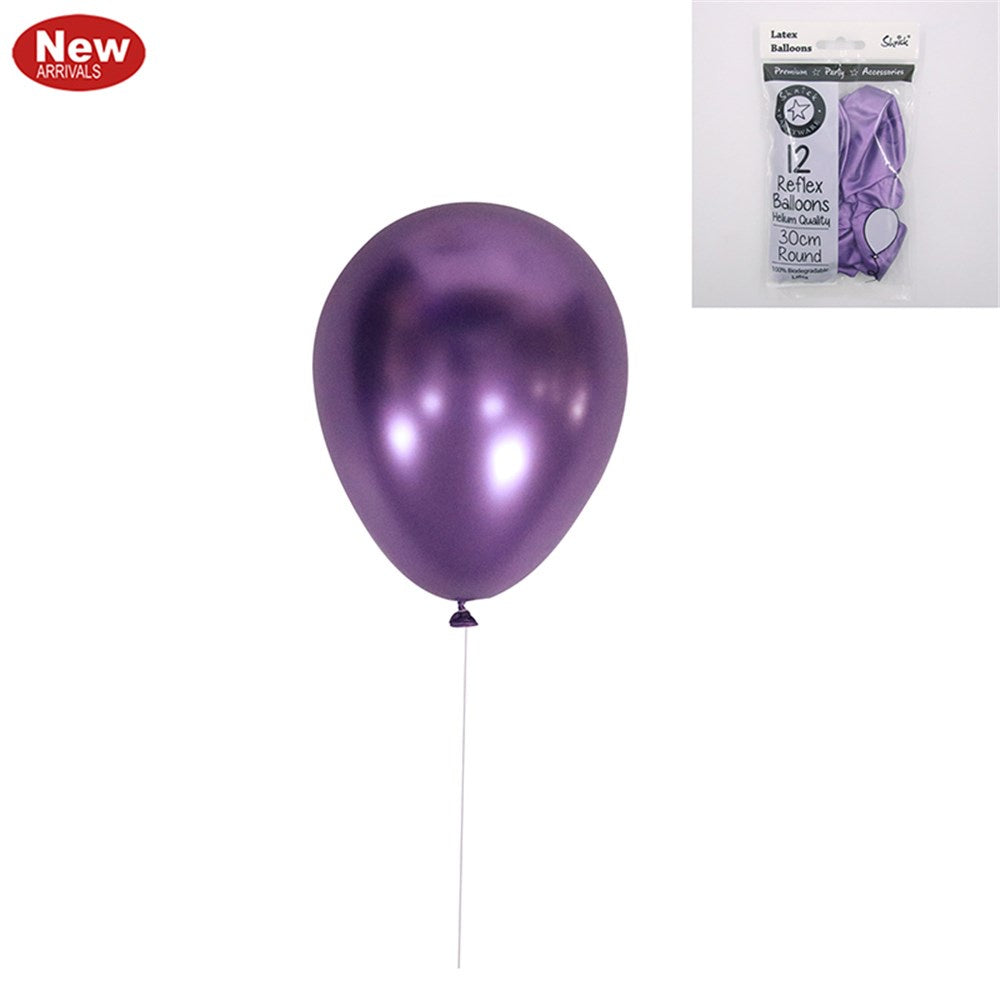 12pk 30cm Chrome Balloons - Aubergine