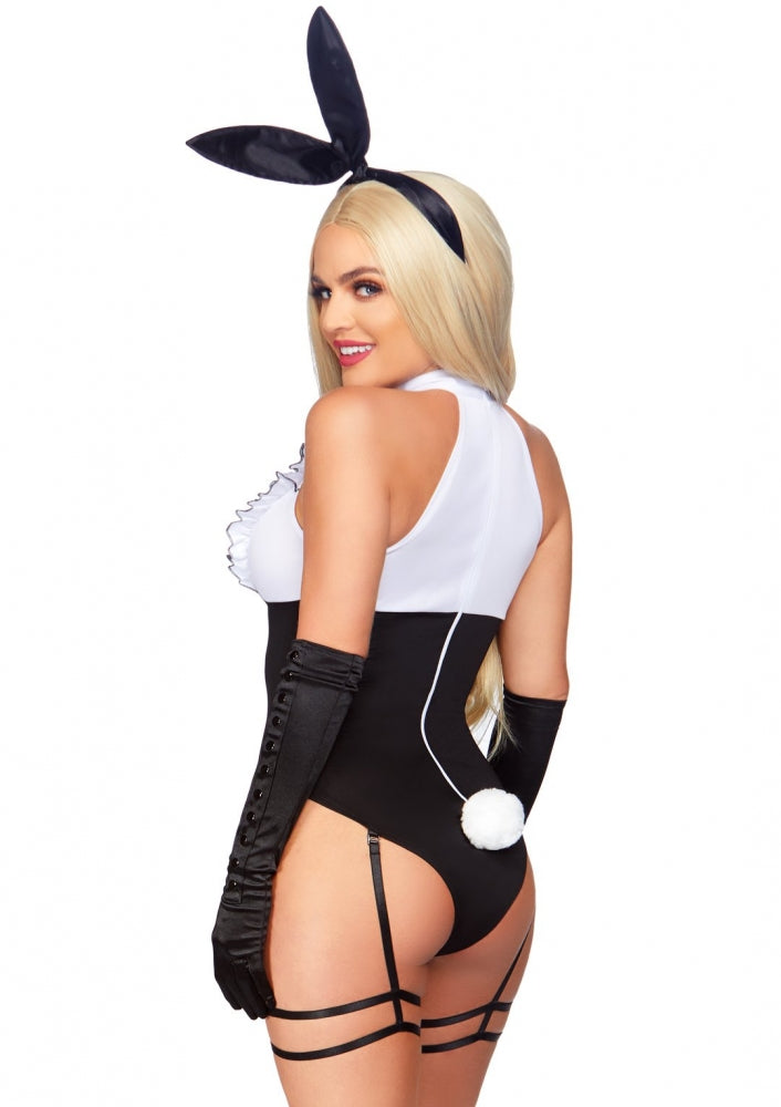 - Package includes: 2 PC Tuxedo Bunny, includes tux and tails garter teddy with attached bunny tail and bunny ear headband.