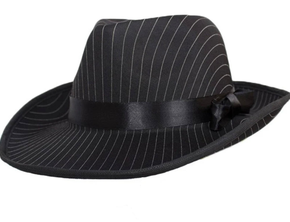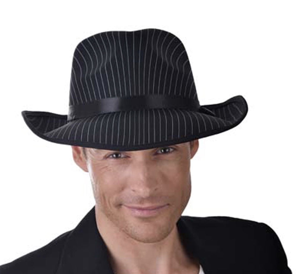 This Black Pinstripe Gangster Hat is beautifully made and a great buy for the price. Sturdy and made from a black and fine white pinstripe fabric with a black satin band with side bow. Perfect for completing any '20s style gangster costume. Pair up with a fake cigar and you'll become the baddest boss in town!