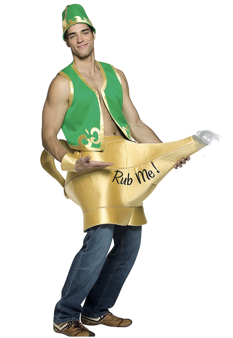 Make a wish come true with the Genie in the Lamp Costume! This playful and fun outfit features a classic genie design, complete with a lamp you can "rub me" for magical moments. It’s a whimsical choice for anyone looking to add a bit of magic and humor to their next costume event!